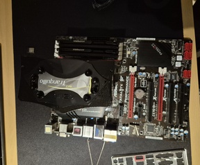 De CPU-koeler had ik nog liggen en mist een 120 mm fan. De mount om deze vast te zetten aan de heatsink heb ik nog wel. Let op: de heatsink is zwart gespoten.