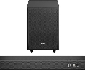 De soundbar beschikt over een draadloze subwoofer en 2 draadloze rear speakers.