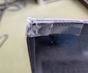 Deze laptop heeft een enkele beschadiging aan de linkerkant van de bezel en de case.