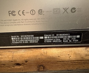 1. iMac 20 inch (Model A1224)- Specs: 2.4GHz / SuperDrive / Bluetooth / AirPort