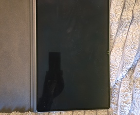 Het toestel heeft wat deukjes in de onderkant van het frame en een klein krasje op de achterkant. Gelukkig zie je hier niks van met de originele Samsung hoes. (De enige die deze mega tablet rechtop kan houden)