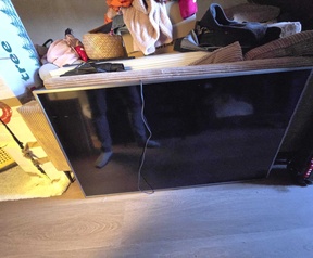 Momenteel is de voet niet gemonteerd. Ik heb er ook een muurbeugel bij zitten, indien gewenst krijg je deze er bij.