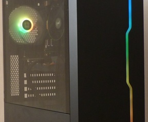 Behuizing: Sharkoon Slider RGB (nieuw) met ThermalRight aRGB ventilator achter, gewone ventilator voor en 2 x aRGB LEDstrip (bediening door knop aan de bovenkant)