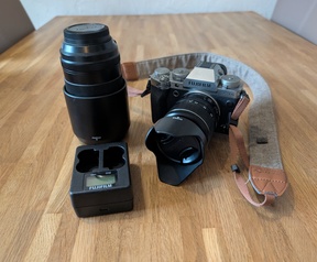 Fujifilm XT-5 zilver met rond de 13000 clicks.