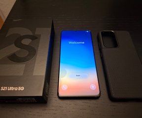 Komt met originele doos en documentatie en een Spigen Liquid Air hoesje, geen oplader/kabel inbegrepen.