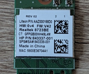 - Chipset: Realtek 8723BE (WLAN + Bluetooth combo)