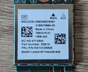 De kaart is gebruikt maar werkend; antenne-contacten en connector zijn intact. Controleer vooraf of jouw apparaat M.2 Wi-Fi 6E + Bluetooth modules ondersteunt.