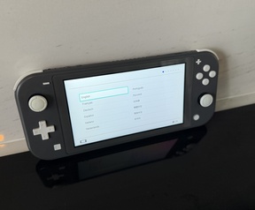 Nintendo Switch Lite in het grijs, zonder grote zichtbare schade anders dan gebruikers/cosmetische krasjes (aan de achterkant). Het scherm is in goede staat, dankzij de screenprotector.