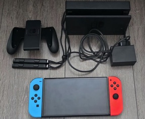 Nintendo switch oled rood/blauw model. Prima conditie. Heeft altijd glazen screenprotector opgezeten.