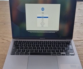 De MacBook wordt volledig gewist geleverd en start in het installatiescherm.