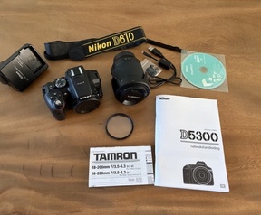 Nikon D5300 spiegelreflexcamera met een Tamron 18-200mm lens. De camera is in goede staat en heeft slechts 3375 clicks.