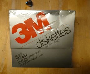 een ongeopened pack met 10x 8" floppies. Het pack is licht beschadigd (zie foto's).