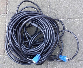 Lengte onbekend,maar 20m haalt 'ie zeker. Bij interesse kan ik de lengte desgewenst precieser opmeten, want kan afwijken van gekoppeld produkt.
