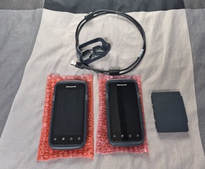 De Honeywell CT60-L0N-BSC210E (rechts op de foto's, met de handstrap) is geheel functioneel.