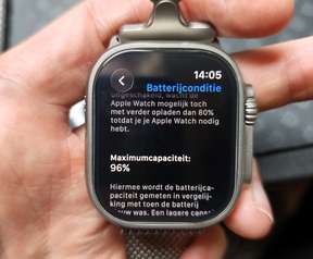 Batterij is nog zeer goed, 96% maximale capaciteit. Ik heb me nooit druk hoeven maken om de batterijduur, alleen tijdens het douchen op de lader gehad.