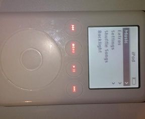 Het is een ipod van de 3e generatie. Geen kleurenscherm, speelt alleen audio. Heeft wel een touchwheel.