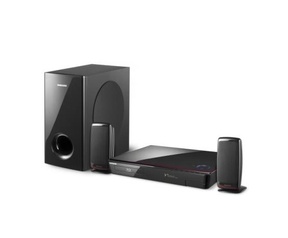 Dit is een Bluray speler met radio en 2.1 speakers. Wegens te weinig gebruik wordt deze goede bluray speler met versterker en speakers verkocht. Er komt een heel goed geluid uit, stevige bas en kan lekker hard. Deze set speelt niet alleen bluray's maar ook dvd's en heeft ook een radio. De ingebouwde versterker is maar liefst 500W en kan met 3 speakers toch een surround effect geven. De subwoofer kan uit het zicht geplaatst worden en de kleine speakers vallen weinig op. De set heeft natuurlijk een HDMI-aansluiting. Aan de voorzijde zit een USB-aansluiting om vanaf een USB-stick muziek of films af te spelen. Via de bijgeleverde dock kan een iPhone of iPod aangesloten worden. De afstandsbediening zit er natuurlijk ook bij.