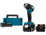 Fijne schroef/boormachine met twee accu's én druppellader in een handige doos. Doet wat je verwacht, maar ook geen bijzondere eigenschappen of materialen.