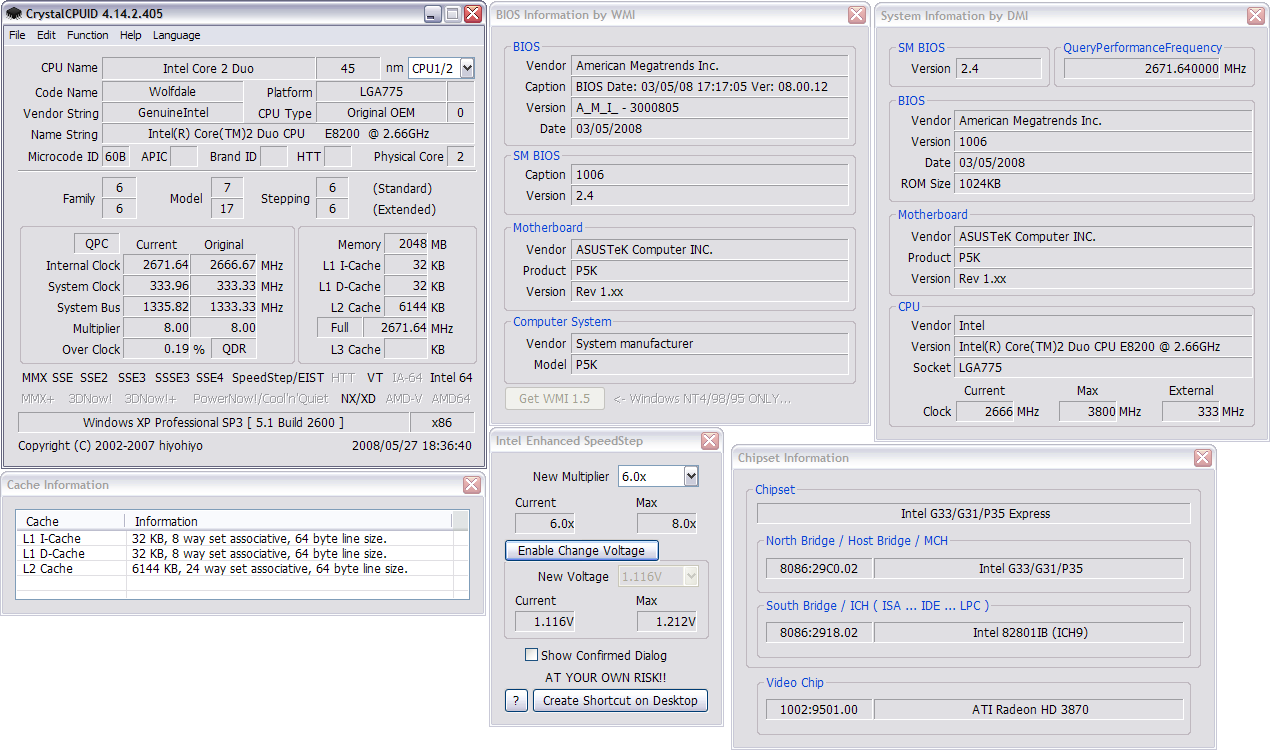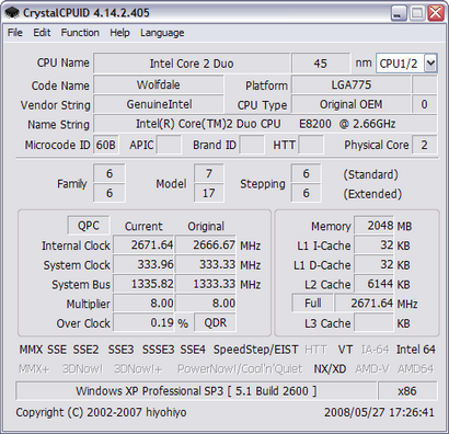 Maandag is versie 4.14.2.405 van Crystalcpuid uitgekomen. Dit programma geeft uitgebreide informatie over de in de computer aanwezige processor(s). Maar het kan meer. Zo kan het ook informatie geven over onder andere het bios, de cache, het chipset en de pci-devices. Tenslotte is het ook mogelijk om de multiplier en voltage van de processor aan te passen. De eerste drie getallen van het versienummer (4.14.2) geven de revisie van het eigenlijke processorinformatiegedeelte aan en deze is voor het laatst half december van het afgelopen jaar aangepast. Het laatste getal (405) geeft de revisie van het systeeminformatiegedeelte aan en hiervan is dus nu een nieuwe release van uitgekomen. Hieronder is te vinden wat er precies veranderd is: