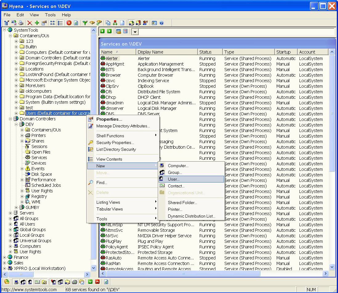 - Fixed a problem causing Hyena to crash when a root computer or domain controller object was right clicked on in the left tree window.