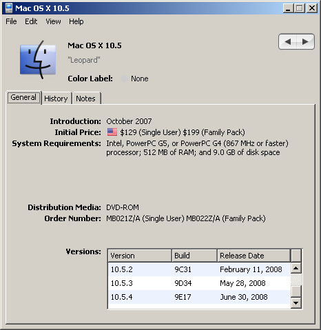 - Updates "Maximum Mac OS" entry based on the system requirements of Mac OS X v10.5