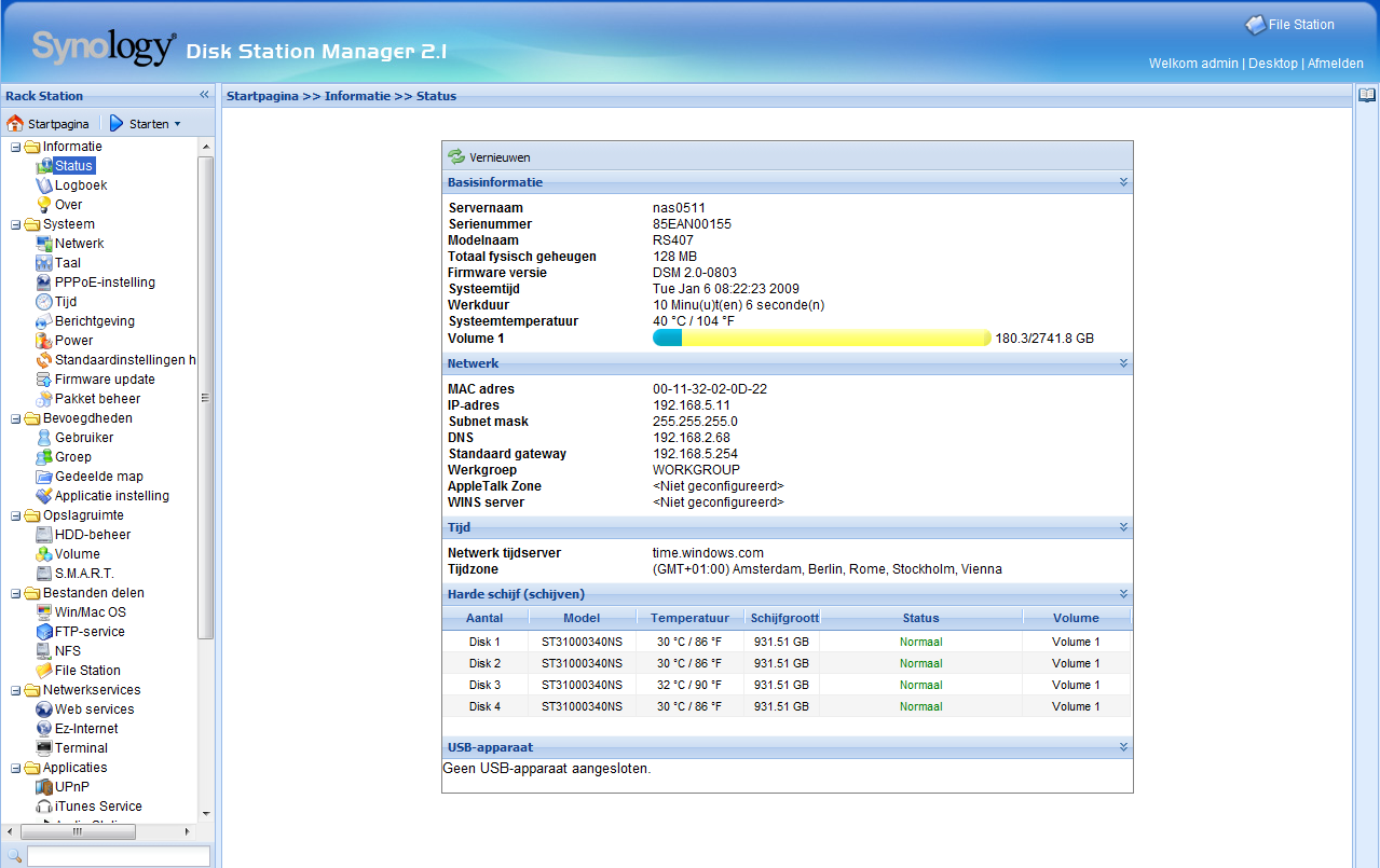 Synology Disk Station Manager 2.1, klik op de afbeelding voor een grotere versie.