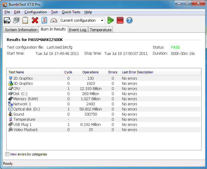 PassMark BurnInTest 7.0 build 1003 - Professional (32bit)