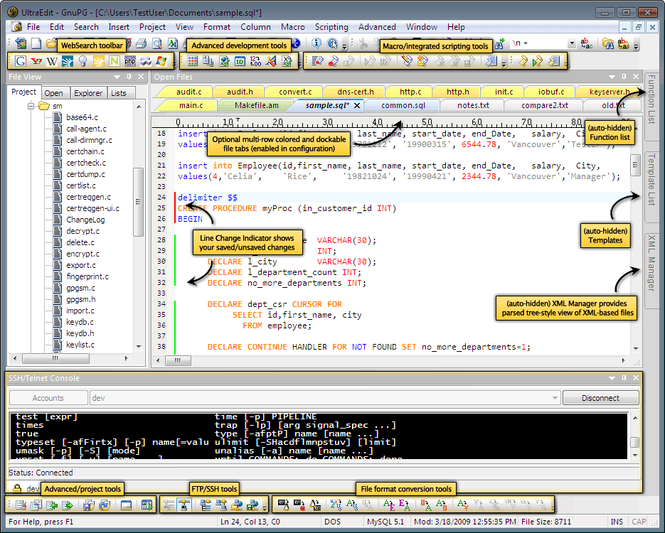 IDM Computer Solutions heeft versie 21.10 van UltraEdit uitgebracht. Deze multifunctionele teksteditor kan overweg met gewone ascii-tekst, maar hexadecimale bestanden en html-bestanden zijn evenmin een probleem. Verder beschikt het programma over features als macro's, verticale blokselectie, syntax-highlighting, een ingebouwde ftp-client en spellingscontrole in diverse talen. In deze release zijn de volgende veranderingen en verbeteringen aangebracht: