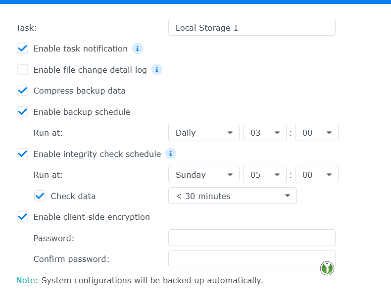 paar screenshots van de Synology Hyperbackup.