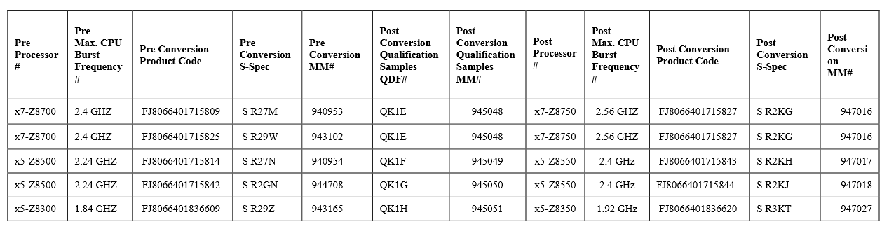 Intel heeft een nieuwe revisie van drie Atom-socs aangekondigd door middel van een Product Change Notification, dat ontdekte de Duitse website Golem. Het gaat om de nieuwe D-stepping van de Atom x7-Z8700, x5-Z8500 en x5-Z8300, die in maart 2015 werden aangekondigd.