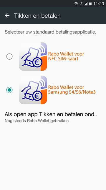 Contactloos betalen met de Rabo Wallet-app en een nfc-simkaart werkt volgens de Rabobank met alle Android-toestellen die versie 4.4 of hoger draaien, met uitzondering van de Nexus-smartphones. Waarom die combinatie niet werkt, is onbekend.