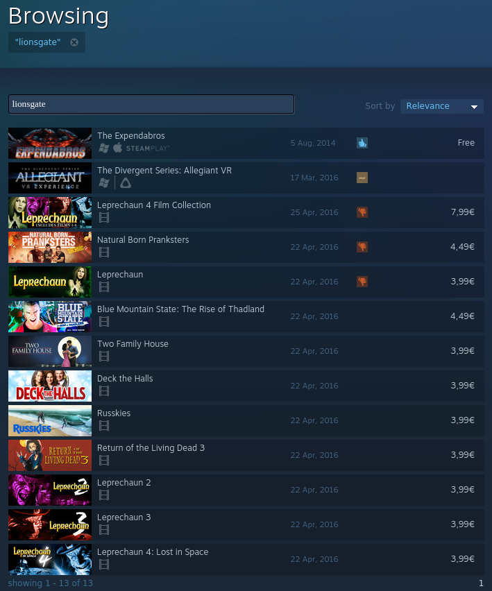 Valve heeft een overeenkomst met de Canadese film- en videodistributeur Lionsgate gesloten. Met de deal kunnen ook verschillende blockbusters via het Steam-platform gekeken worden. De films zijn op alle ondersteunde platforms beschikbaar, inclusief SteamVR.