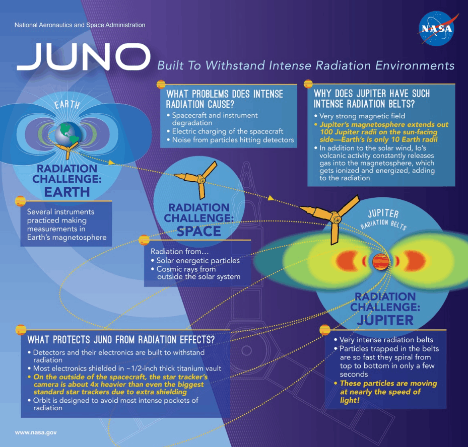Het duurt zo'n 48 minuten om een signaal naar Juno te sturen en ook weer 48 minuten om een signaal terug te krijgen. Daarom was het niet mogelijk de ruimtesonde nog aan te sturen in geval van een mogelijk falen van bijvoorbeeld de raket. Nadat Juno in een baan om Jupiter stond, draaide de sonde zich zo richting de zon dat de 18.689 zonnecellen weer energie konden opvangen, schrijft NASA.