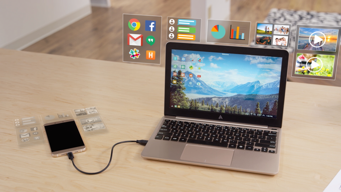 Het systeem lijkt wat op de NexDock die gebruikmaakt van de Continuum-functionaliteit van Windows 10 en de Convergence-feature van tablets en smartphones met Ubuntu.