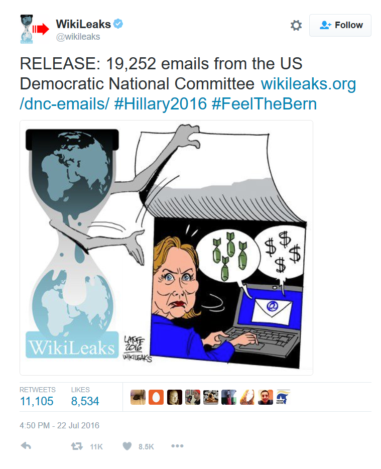 WikiLeaks heeft vrijdag een datadump online gezet die 19.252 e-mails van en naar zeven kopstukken van de Amerikaanse Democratische partij bevat. De organisatie legt daarmee tegelijkertijd de persoonsgegevens van een groep donateurs bloot.