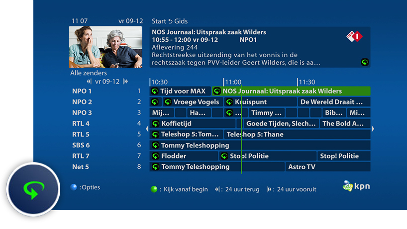 KPN kondigt de komst van 'Terugkijken via de gids' aan via zijn forum. Klanten hoeven niets te doen om toegang tot de dienst te krijgen; KPN maakt deze vanaf 26 februari beschikbaar. Het gaat om een uitbreiding op Begin Gemist: tot zeven dagen in het verleden zijn programma's gratis terug te kijken.