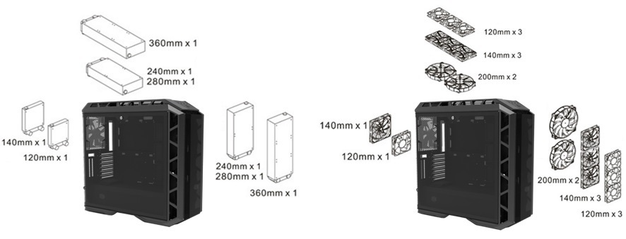 Bij de H500P ligt de nadruk op koeling. De behuizing wordt geleverd met een onbekend aantal 200mm-ventilators. Van dergelijke ventilators passen er twee aan de voorkant van de behuizing en nog twee aan de bovenkant. Aan de achterzijde is ruimte voor een 140mm-ventilator. Ook biedt de kast veel ruimte voor waterkoeling, met ruimte voor een 360mm-koelblok voor- en bovenin de behuizing. Beide zijpanelen zijn van gehard glas gemaakt. Aan de rechterkant kunnen gebruikers de kabels met klepjes afdekken, zodat ze niet zichtbaar zijn