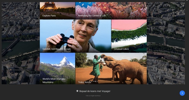 Daarmee kunnen gebruikers eigen 'voyagers' toevoegen. Google introduceerde deze afgelopen voorjaar. Gebruikers kunnen hiermee interactieve rondleidingen zien die worden begeleid door ingesproken teksten van bijvoorbeeld wetenschappers. Zo zijn zes bijzondere natuurlocaties afkomstig uit BBC Earth-afleveringen te zien en is het Gombe National Park in Tanzania te bekijken waarbij de stem van Jane Goodall vertelt over haar onderzoek naar chimpansees.