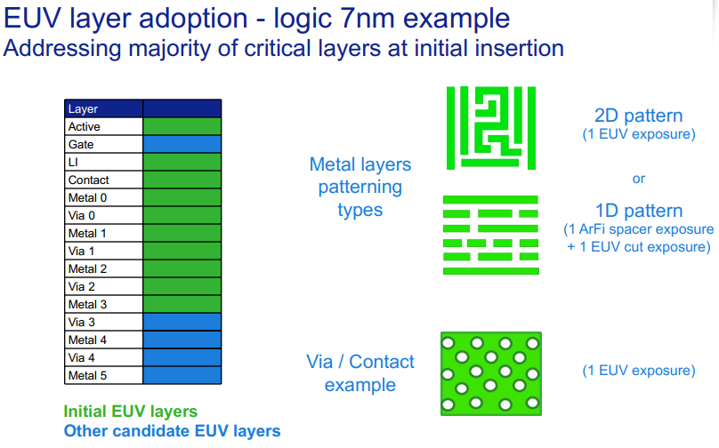 De fabrikanten willen op euv overstappen om rendabel kleinere structuren op het silicium aan te kunnen brengen. De inzet van de huidige 193nm-immersielithografie wordt vanaf 7nm te duur en tijdrovend. De euv-machines van ASML maken gebruik van extreem ultraviolet licht met een aanzienlijk kortere golflengte van 13,5nm, om dunnere lijntjes te kunnen beschrijven. De machines zijn echter nog niet klaar voor massaproductie. ASML stelt als doel dat de machines meer dan 125 wafers per uur kunnen bewerken en de beschikbaarheid van de machines moet op negentig procent of hoger liggen.