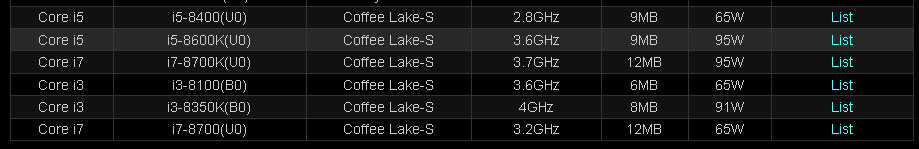 Intel moet zijn Coffee Lake-S-processors voor desktops nog officieel presenteren, volgens geruchten zal dat op 5 oktober gebeuren, maar veel informatie is al bekend. CPU-World ontdekte dat ASRock details van de achtste generatie desktopprocessors op zijn website had staan. Inmiddels zijn die weer verwijderd door de moederbordenmaker. De informatie komt overeen met details uit eerdere geruchten.