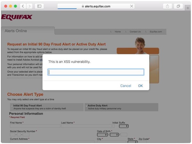Het xss-lek stelt aanvallers in staat om willekeurige Javascript-code uit te voeren op het domein van Equifax. Een van de mogelijke gevolgen zou kunnen zijn dat aanvallers een phishing-aanval uitvoeren, waarbij klanten een link via e-mail krijgen die echt naar het domein van Equifax leidt, maar toch een nepsite is om gegevens te ontfutselen.