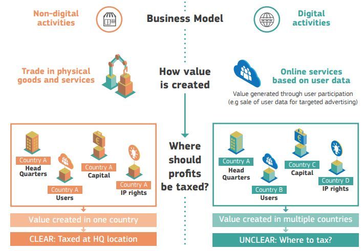Volgens de Europese Commissie groeit de omzet van de grootste techbedrijven sneller dan die van multinationals van andere sectoren, maar bedraagt hun gemiddelde effectieve belastingtarief de helft van dat van de traditionele sector. Techgiganten weten vaak via trucs belasting te ontlopen en hebben soms geen enkele vestiging in lidstaten waar ze wel veel gebruikers hebben.
