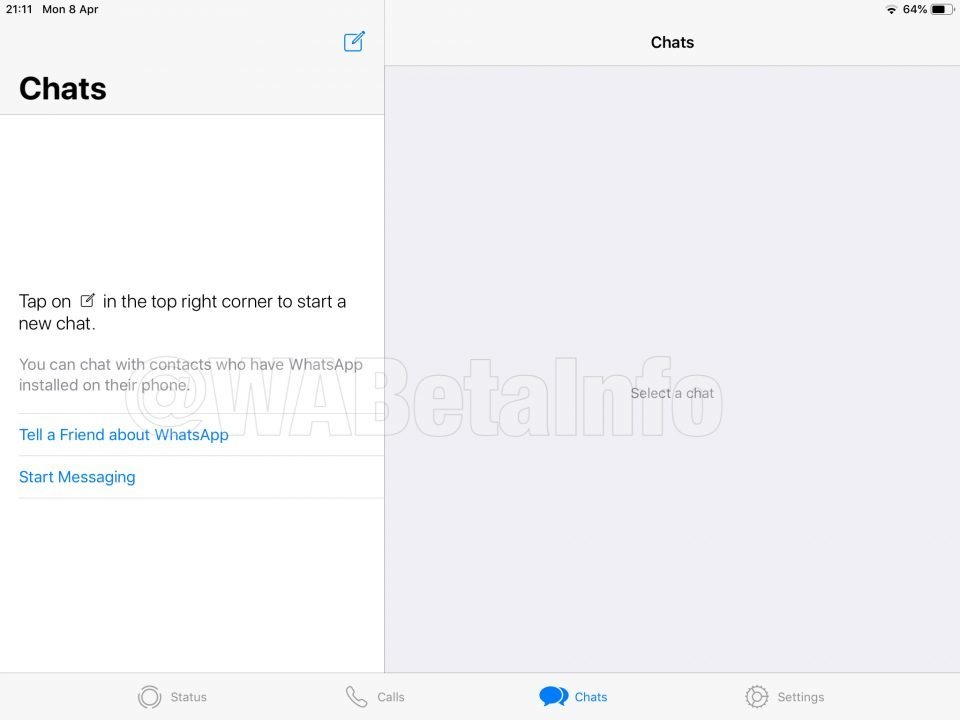 WhatsApp voor de iPad heeft geen andere functies dan de versie voor iOS, maar kent vooral een andere interface, meldt WABetaInfo. De site vond aanwijzingen voor de iPad-versie in de iOS-app en heeft screenshots gemaakt van de aankomende iPad-app. Dat de versie code heeft in de iOS-app, wijst erop dat het gaat om een universele app.