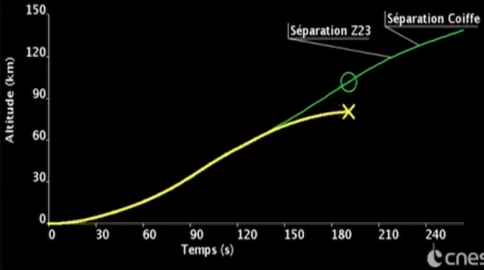 In de livestream was te zien dat de raket een maximale snelheid van 2,17km per seconde haalde, waarna vanaf 2 minuten en 15 seconden na het opstijgen van het lanceerplatform de snelheid langzaamaan afnam. De raket begon ook af te wijken van het geplande stijgingstraject en wist nauwelijks nog hoogte te winnen. De Zefiro 23-vastebrandstofmotor had ongeveer 77 seconden moeten branden, waarna een derde en vierde trap het hadden moeten overnemen, maar zover kwam het niet.