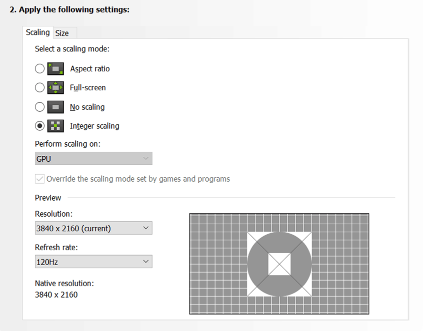 Verder brengt de driver gpu integer scaling naar de RTX-videokaarten en de kaarten uit de GTX 16xx-serie. Daarbij wordt gebruikgemaakt van een hardwarematig scalingfilter om ervoor te zorgen dat games met pixelart en een lage resolutie er toch goed uitzien op monitoren met een hoge resolutie. Games als FTL, Hotline Miami en Terraria hebben hier baat bij. Het resultaat is dat de vergrote pixels op het scherm nog steeds pixelvormig zijn, dus met scherpe hoeken. Ook deze functie moet ingeschakeld worden in het Nvidia Control Panel.