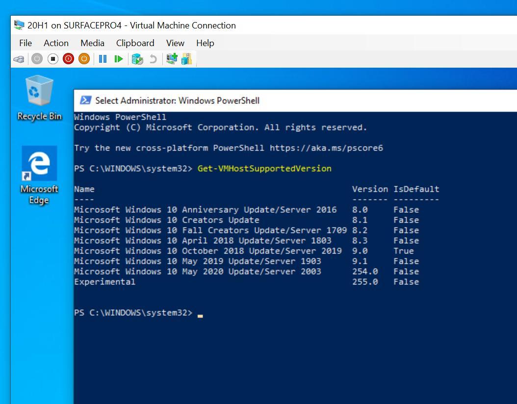 De Fin Tero Alhonen vond de naam met het commando VMHostSupportedVersion in Powershell in een vm met een Insider-build van de 20H1-update. Dat is een commando waarbij Windows 10 weergeeft welke configuraties een vm kan hebben en welke Windows-versies die ondersteunt.