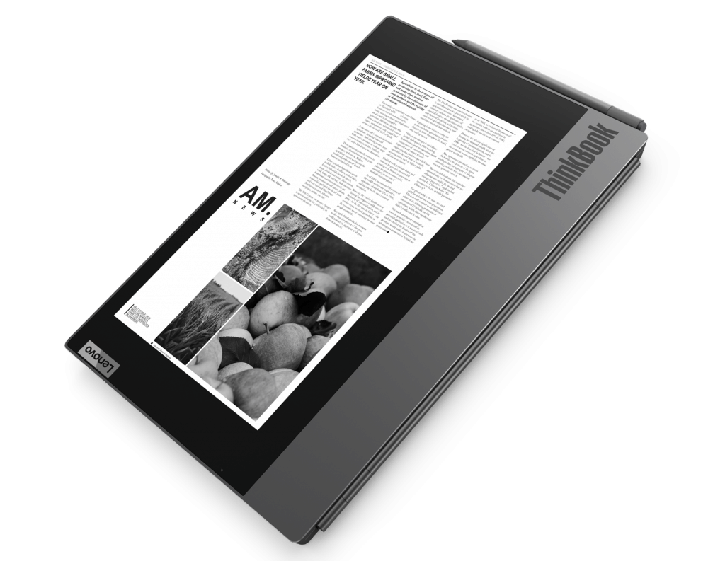 Lenovo heeft op de CES 2020 de ThinkBook Plus geïntroduceerd, een 13,3"-laptop met een E Ink-scherm als meest opvallende eigenschap. Dit scherm zit op de buitenkant van de laptop en is te gebruiken door het reguliere laptopscherm in te klappen.