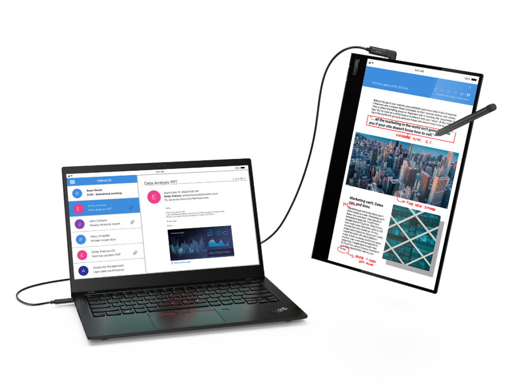 De Lenovo ThinkVision M14t heeft een 14"-scherm met een resolutie van 1920x1080 pixels en het ips-paneel heeft een maximale helderheid van 300cd/m². Die eigenschappen zijn gelijk aan de bestaande ThinkVision M14 zonder touchscreen. De touchversie is met 698 gram wel zo'n 130 gram zwaarder.