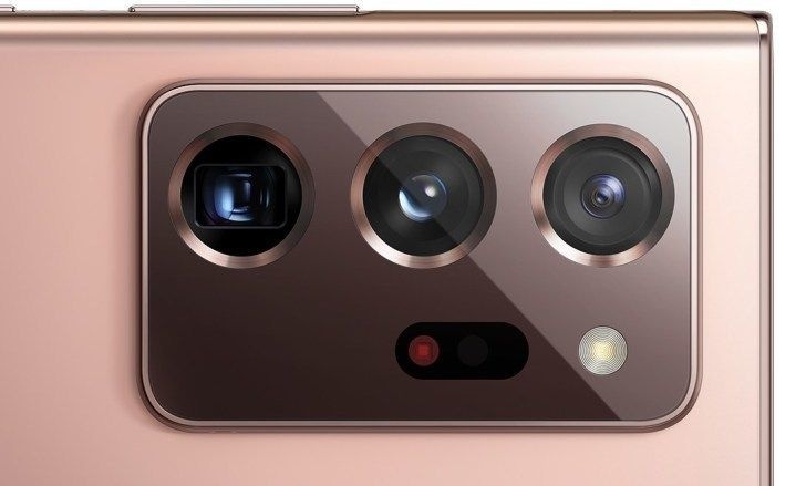Verder heeft de Note 20 Ultra 5G een 12-megapixelcamera met 5x optische zoom en een periscopische constructie. Bij de S20 Ultra, die een vergelijkbare zoomlens heeft, noemde Samsung dat nog 100x Space Zoom. Die marketingterm keert niet terug op de Note 20 Ultra. De derde camera is een 12-megapixelsensor met ultragroothoeklens.