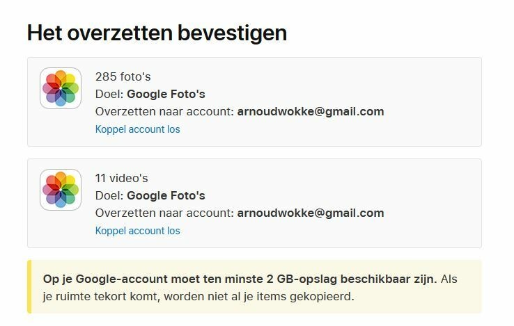 De functie werkt maar één kant op, dus de foto's en video's kunnen vanaf iCloud naar Google Foto's, maar niet omgekeerd, blijkt uit de hulppagina erover. Het overzetten is geen snel proces: het kan tussen drie en zeven dagen duren, vermeldt Apple. De foto's en video's blijven in de iCloud-opslag staan na de migratie.